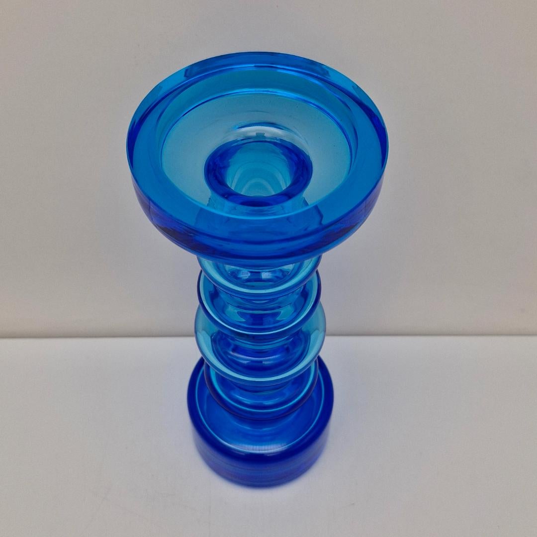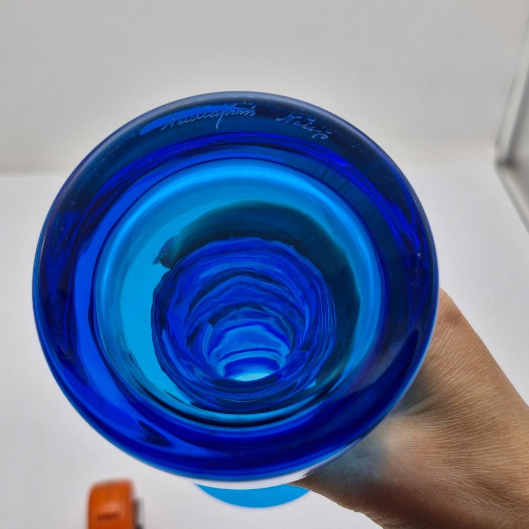 Nuutajärvi, Pikku-Majakka, turkoosi, Oiva Toikka. Nyt on aarre Oiva Toikan lasitaiteen ystäville, näyttävä ja kauniin turkoosinsininen "Pikku-Majakka", korkeus 23,5 cm. Ollut tuotannossa vuosina 1967-1971.Pikku-Majakka on käytetty, mutta täysin ehjä ja hyväkuntoinen. Pohjassa signeeraus Nuutajärvi Nötsjö.