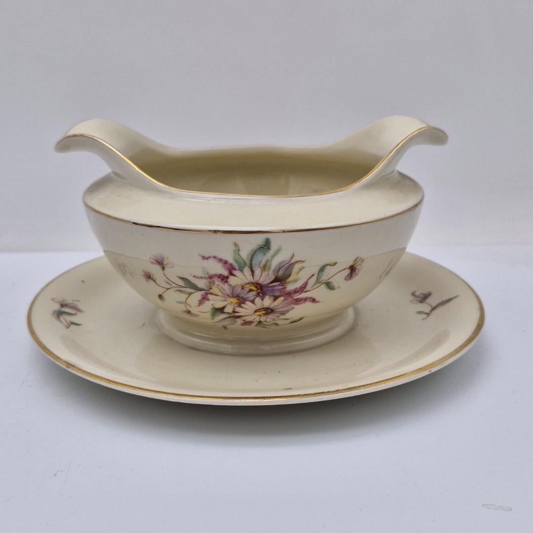 Arabia Maire Kastikekaadin, piippuleimalla. Malli on AX, sävyposliinia ja kaunis kukka-aiheinen siirtokuvakoriste nimeltään Maire, kultareunainen. AX-astiasto Maire-koristeella oli tuotannossa v. 1940-1951.