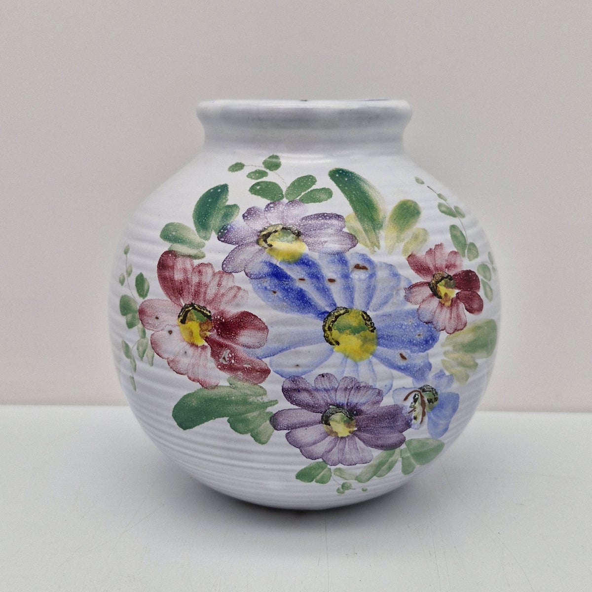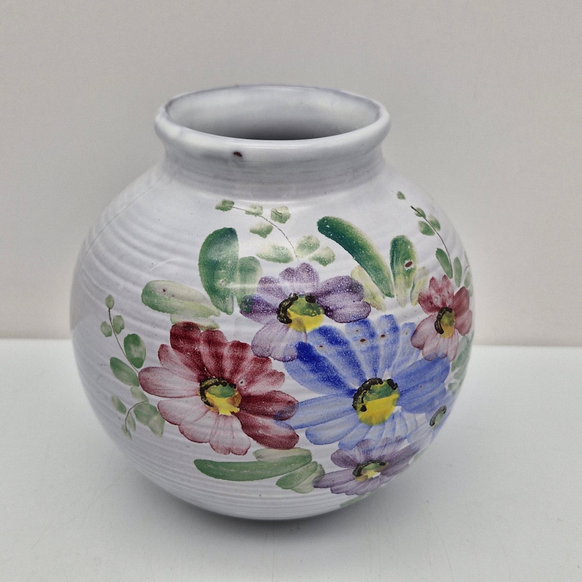 Arabia ARA Maljakko, käsinmaalattu. Kaunis pyöreämallinen Arabian ARA-taideosaston valmistama käsinmaalattu, kaunis kukka-aiheinen maljakko.