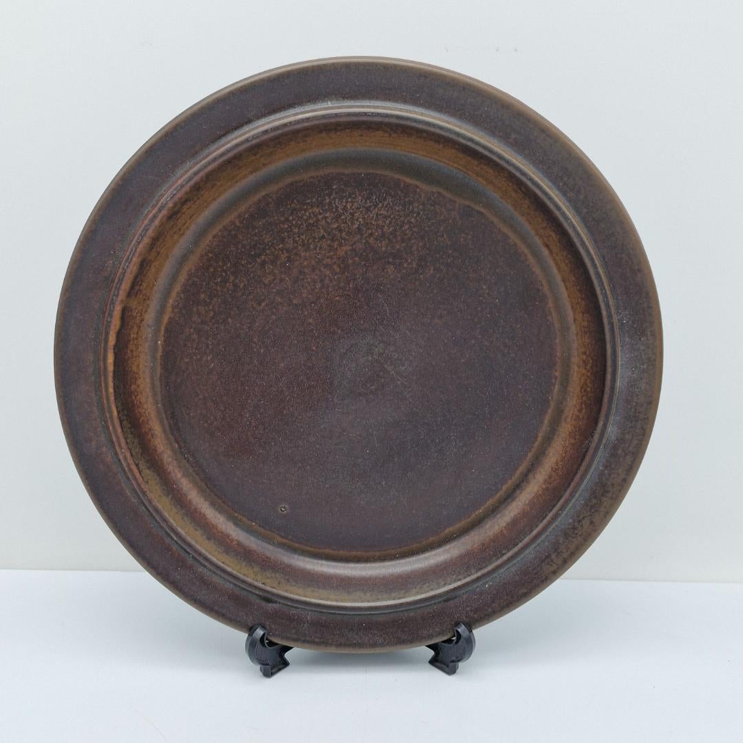 Arabia Ruska Tarjoilulautanen 33 cm. Ruska-sarjaan kuuluva iso pyöreä tarjoilulautanen, halkaisija 33 cm. Ulla Procopè suunnitteli maanläheisen ja yksinkertaisen tyylikkään Ruska sarjan vuonna 1960. Ruska-sarja säilyi tuotannossa vuodesta 1961 aina 1990-luvun lopulle asti.