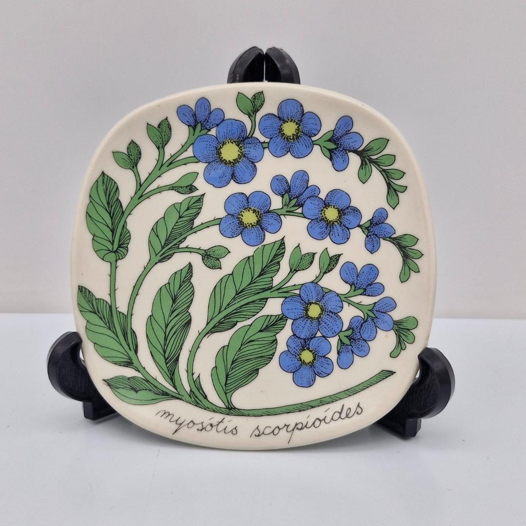 Arabia Botanica Seinälautanen, Luhtalemmikki Myosotis scorpioides. Suositun Botanica-keräilysarjaan kuuluvan kauniin seinälautasen suunnittelija on Esteri Tomula.