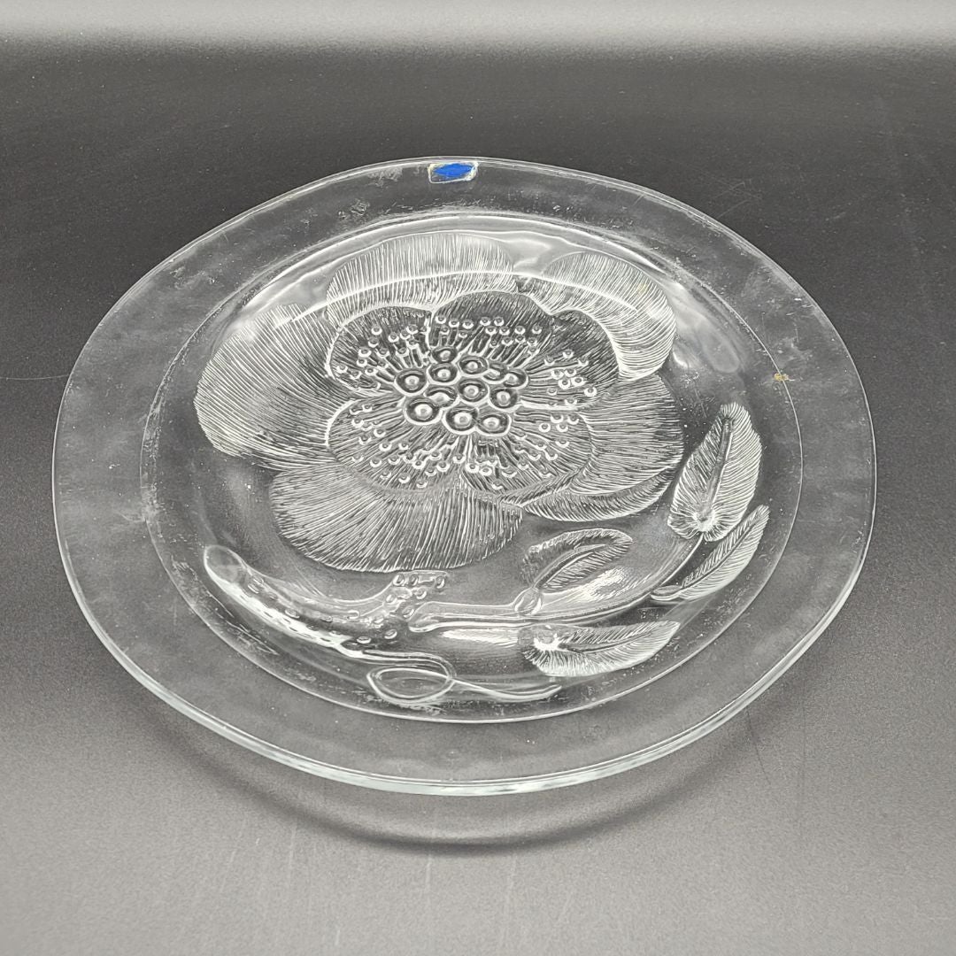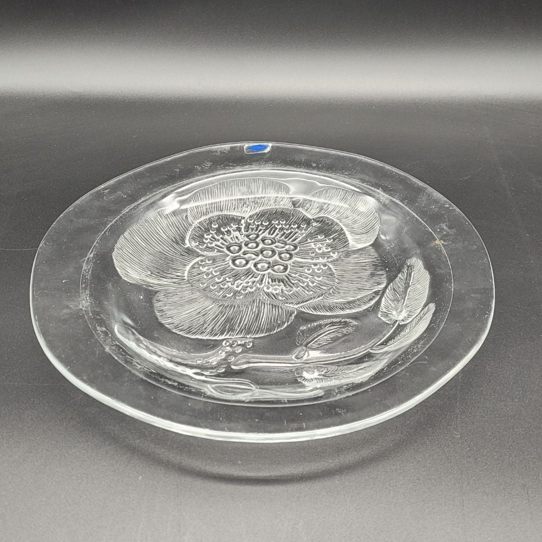 Nuutajärvi, Oiva Toikka Pioni Lautanen 26 cm. Kaunis lasinen matala ruokalautanen, Pioni. Suunnittelija, Oiva Toikka, Nuutajärvi. Lautasen halkaisija n. 26 cm. Valmistettu v. 1976-1999.