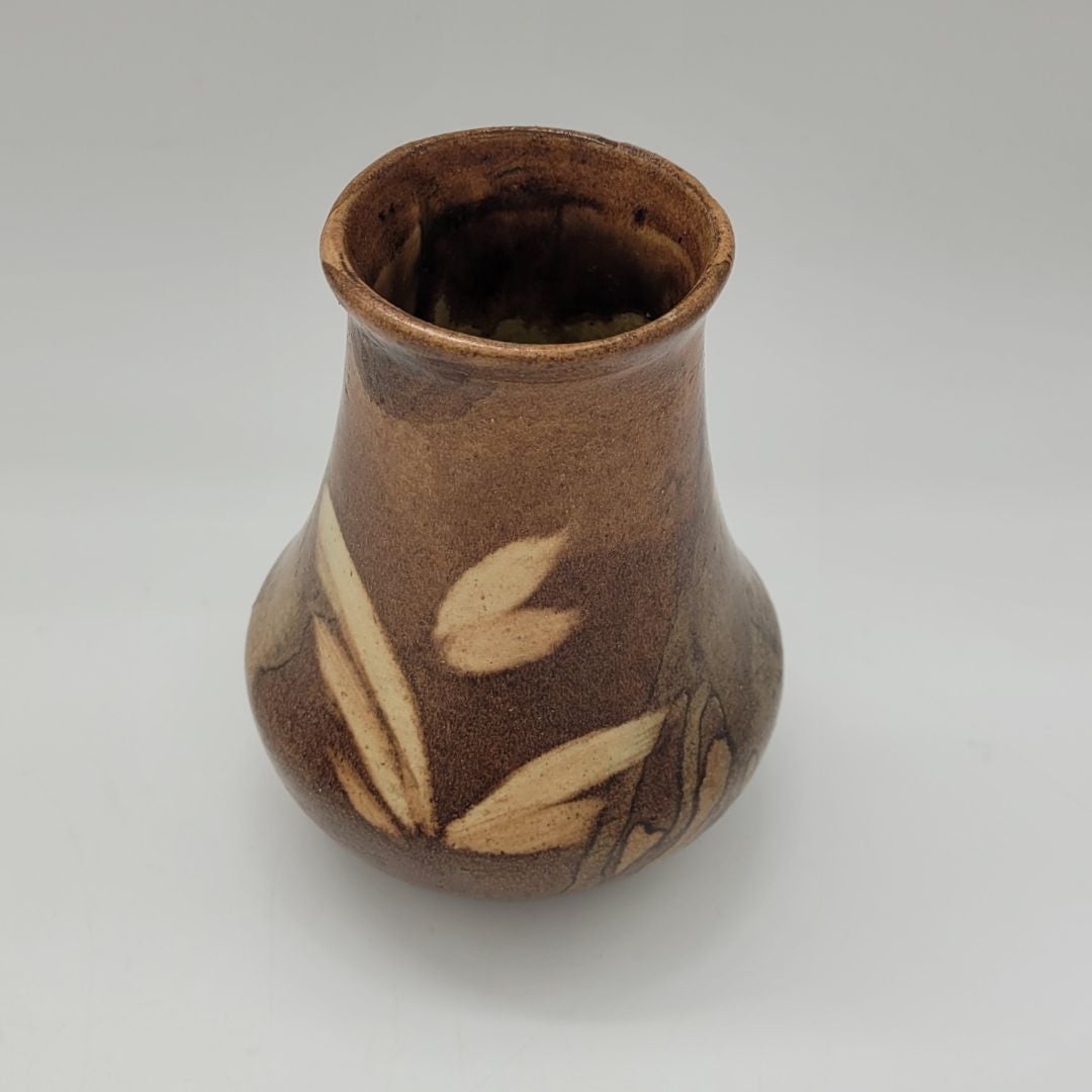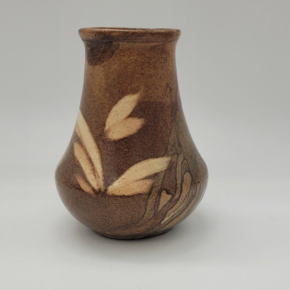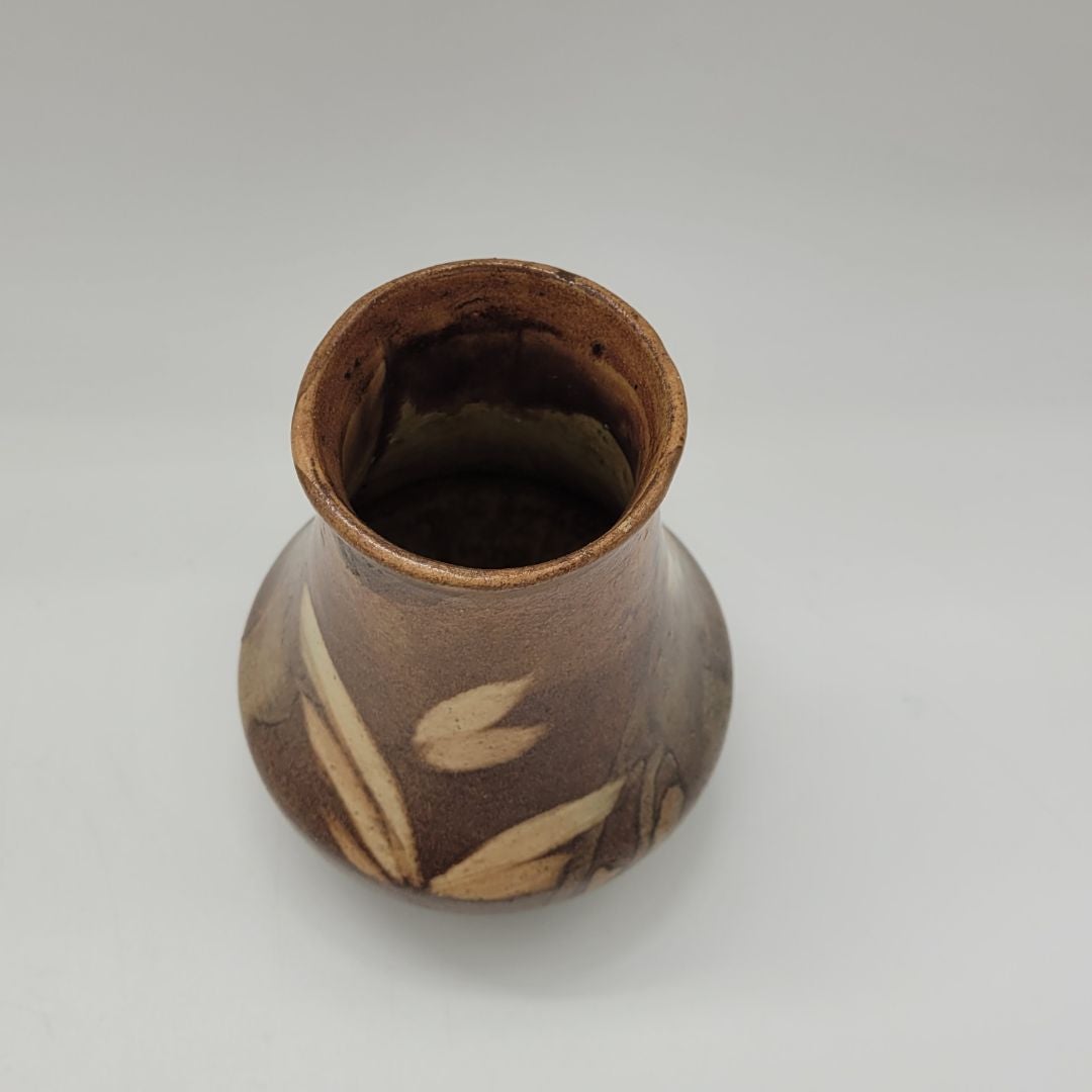 Kupittaan Savi - Maljakko 13,5 cm, ruskea. Vanha ruskeansävyinen, käsinmaalattu pienehkö maljakko Kupittaan Savelta, korkeus n. 13,5 cm ja suuaukon halkaisija 6,5 cm.