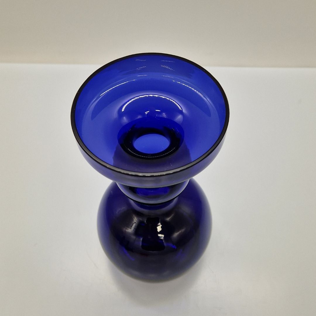Oiva Toikka, Maljakko 1483, maljakon väri tummansininen ja korkeus n. 18,5 cm. Ollut Nuutajärven lasin tuotannossa v. 1965-1969.
