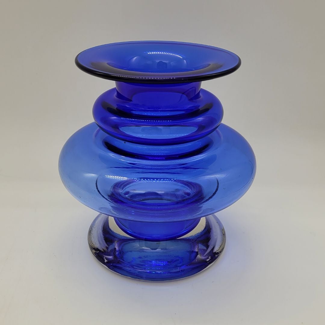 Tamara Aladin, Tornado Maljakko sininen, signeerattu. Kaunis sininentaidelasi-maljakko Tamara Aladinilta, nimeltään Tornado. Tornado-sarja oli tuotannossa 1970-luvulla ja sarjasta löytyy erivärisiä ja -kokoisia maljakoita. Tämän maljakon korkeus on n. 16 cm.