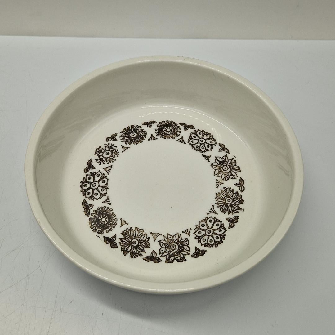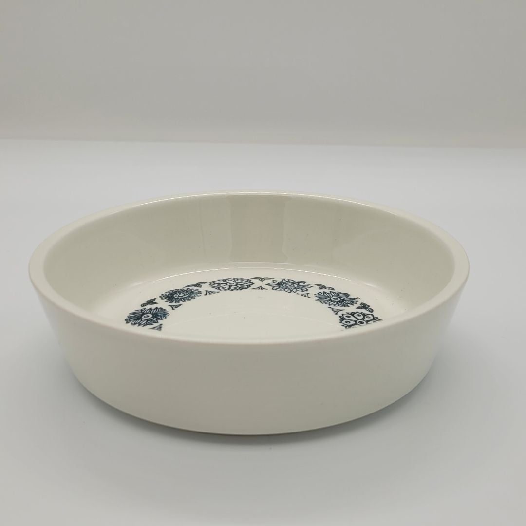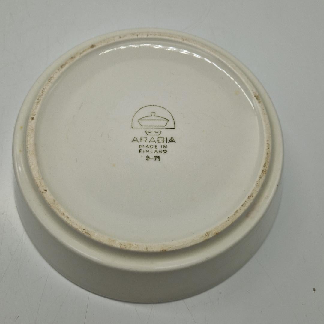 Hyväkuntoinen, ehjä pieni tarjoiluastia / kulho, vähäisiä käytön jälkiä. Kulhon halkaisija 14,5 cm ja korkeus 4 cm.