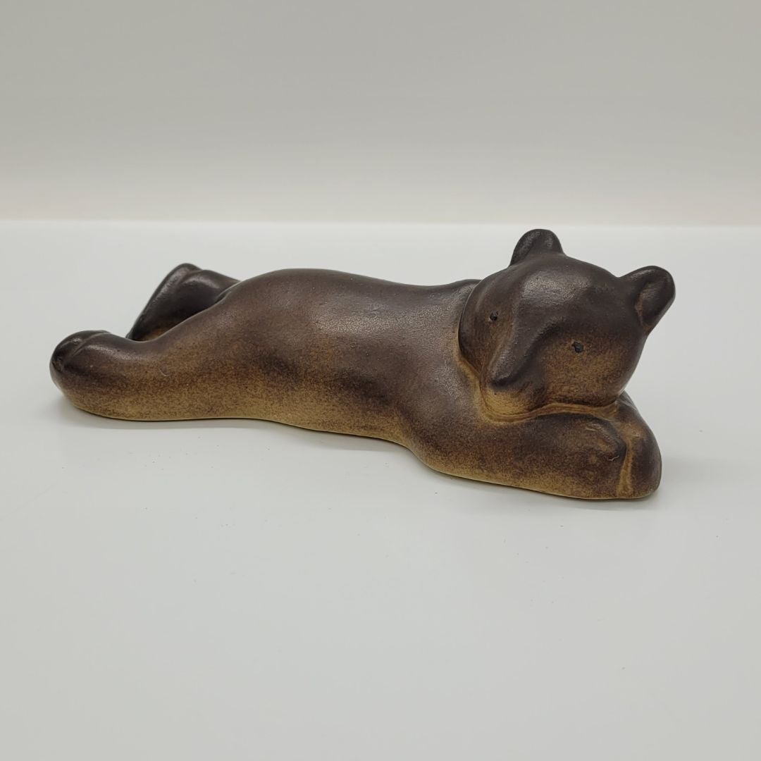 Arabia Karhu Figuuri, makaava. Arabian valmistama hieno eläinfiguuri makaava Karhu, tummanruskea värisävyltään. Pituus 17 cm.