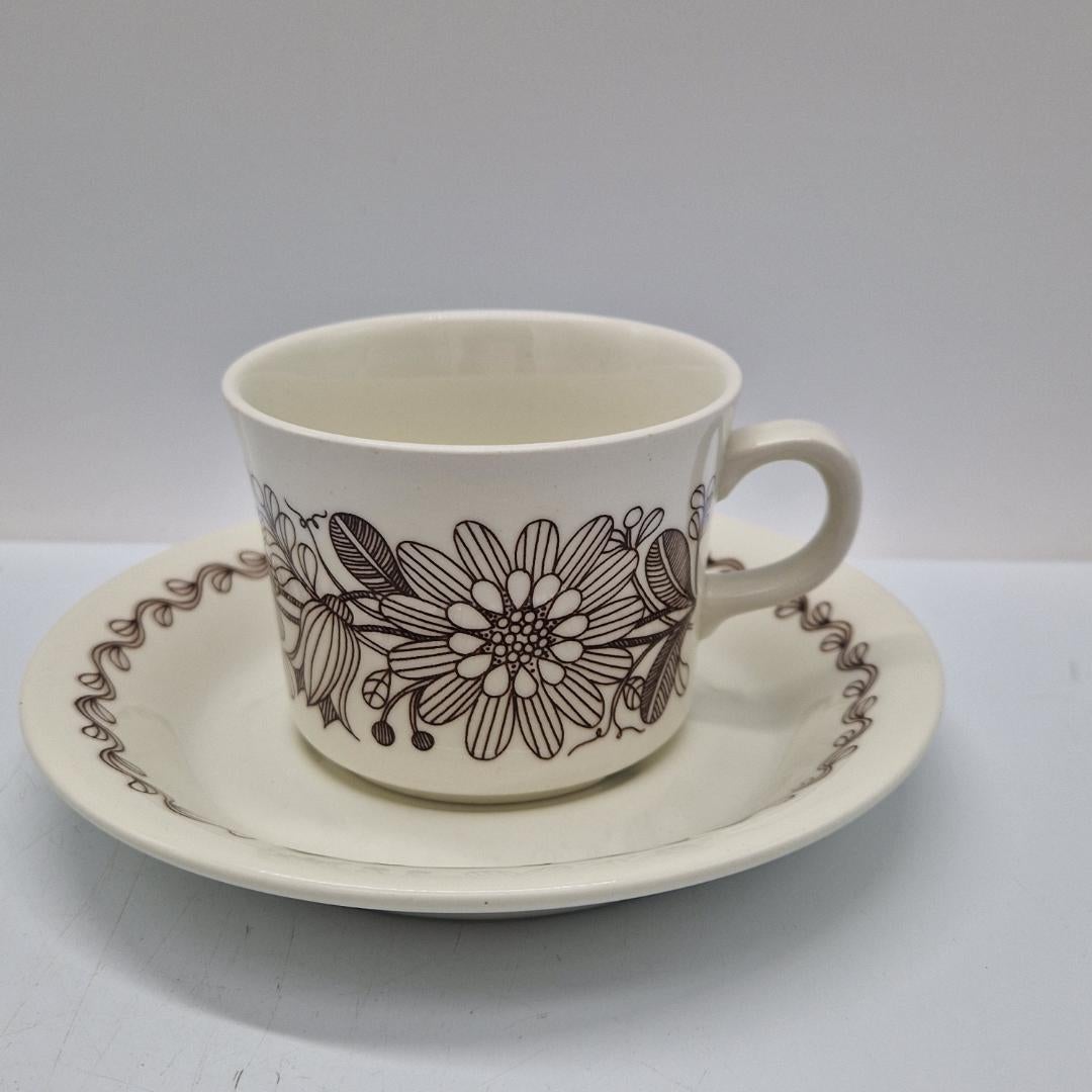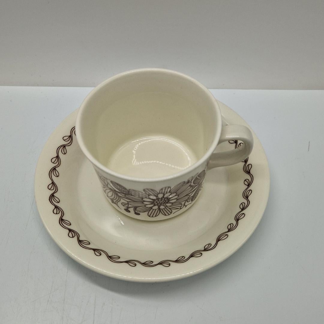 Arabia Elina Kahvikuppi ja Asetti. Arabian valmistama kahvikuppi asetteineen kauniilla Elina-nimisellä kukkakoristeella, suunnittelija Esteri Tomula.