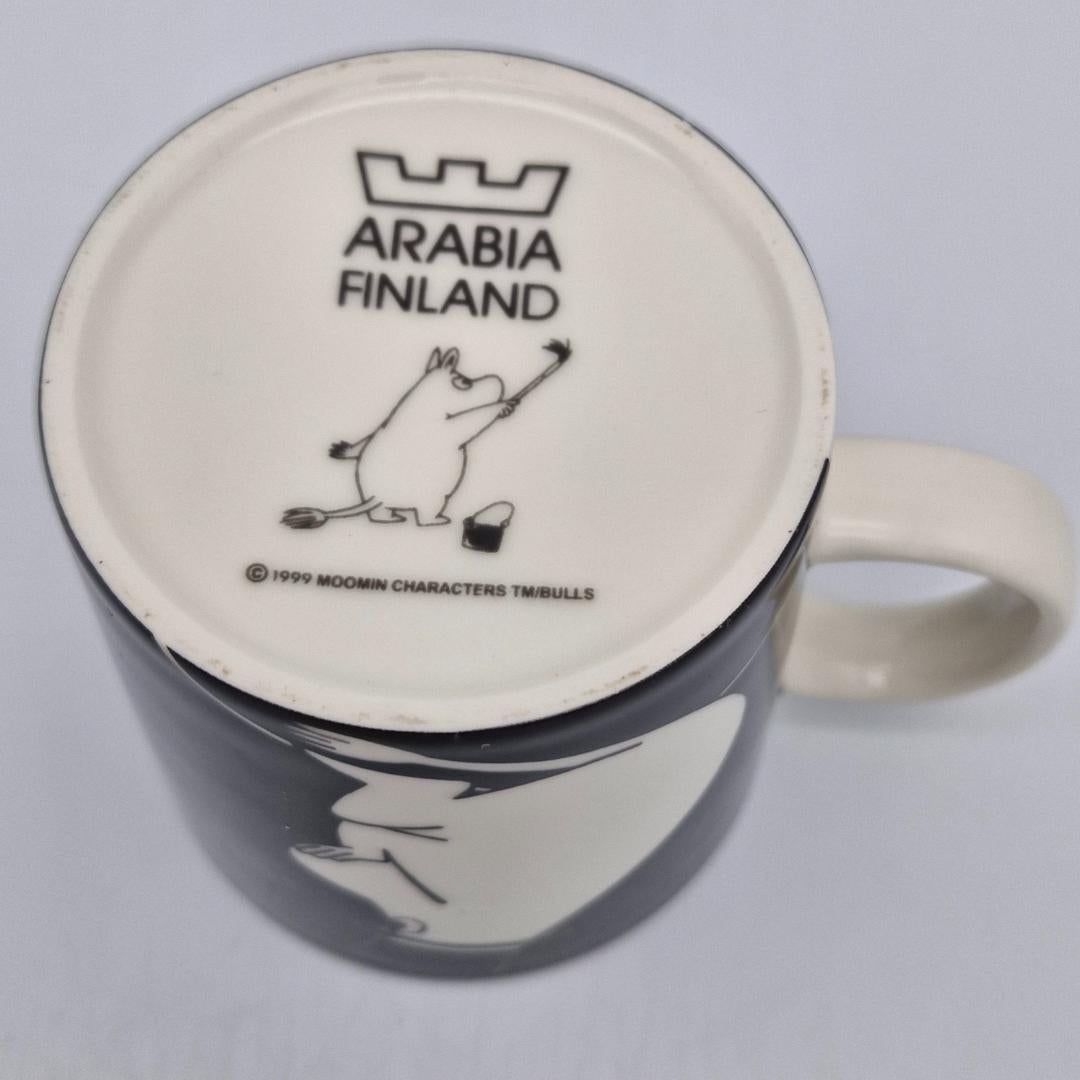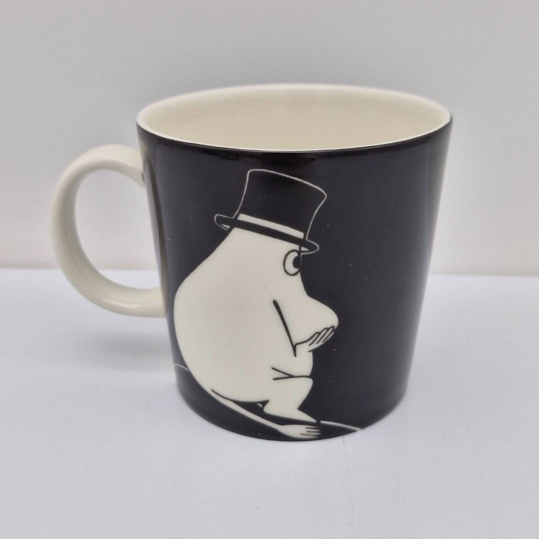 Arabia Muumimuki Muumipappa Tuumiskelee (1999-2013). Musta Muumipappa tuumiskelee-muki on ollut tuotannossa vuosina 1999-2013.