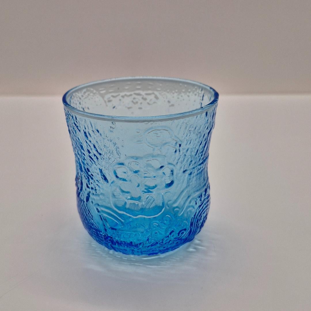 Nuutajärvi, Fauna Juomalasi 12 cl, turkoosi, Oiva Toikka. Oiva Toikan suunnittelema Fauna-sarjan turkoosi juomalasi, valmistaja Nuutajärven lasi. Lasien korkeus on 7 cm ja halkaisija 6,5 cm, tilavuus 12 cl.