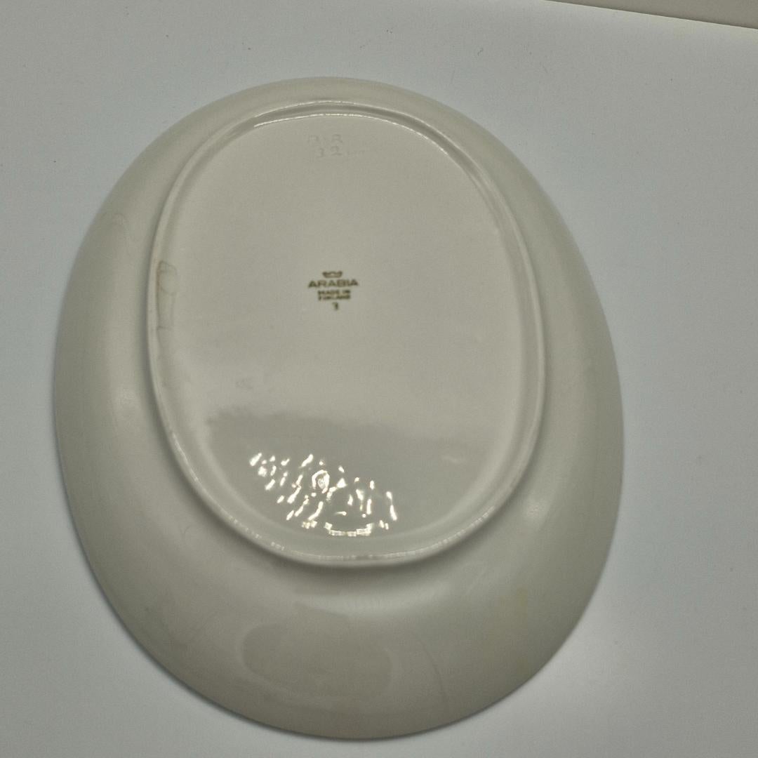 Arabia Oras Tarjoiluvati 32 cm. Arabian valmistama ovaali tarjoiluvati harvinaisemmalla käsinmaalatulla Oras-nimisellä koristeella. Koristeen on suunnitellut Aune Siimes, valmistettu vuosina 1961-1962.