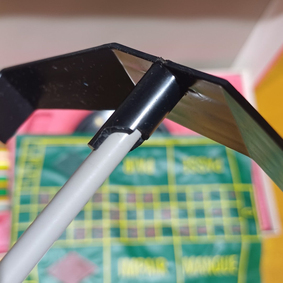 Valmistettu italiassa, kaikki osat tallessa. Vähäiseksi ovat tämän pelin käyttökerrat jääneet, tosin vaurioitta ei niistäkään ole selvitty. Eli jossain muoviosassa lohkeama, osat kuitenkin kestävät paikoillaan. Alkuperäispakkauksen pinnat ovat patinoituneet mutta ehjät.