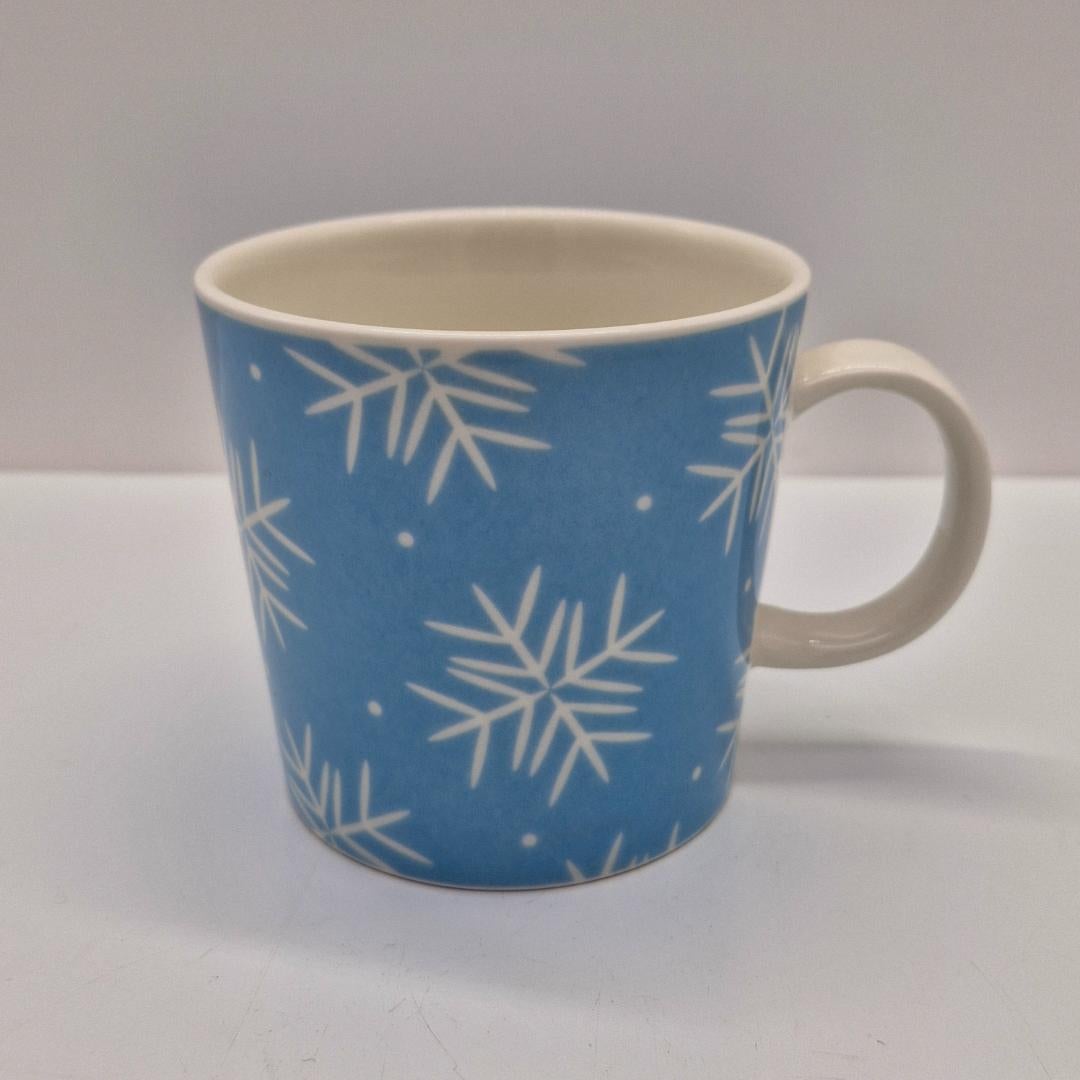 Arabia, Pikku-Kide Muki. Vaaleansininen lumihiutalekuvioinen Pikku-kide muki on sesonkimuki vuodelta 2007, design Pekka Paikkari. Muki on Teema-mallia.