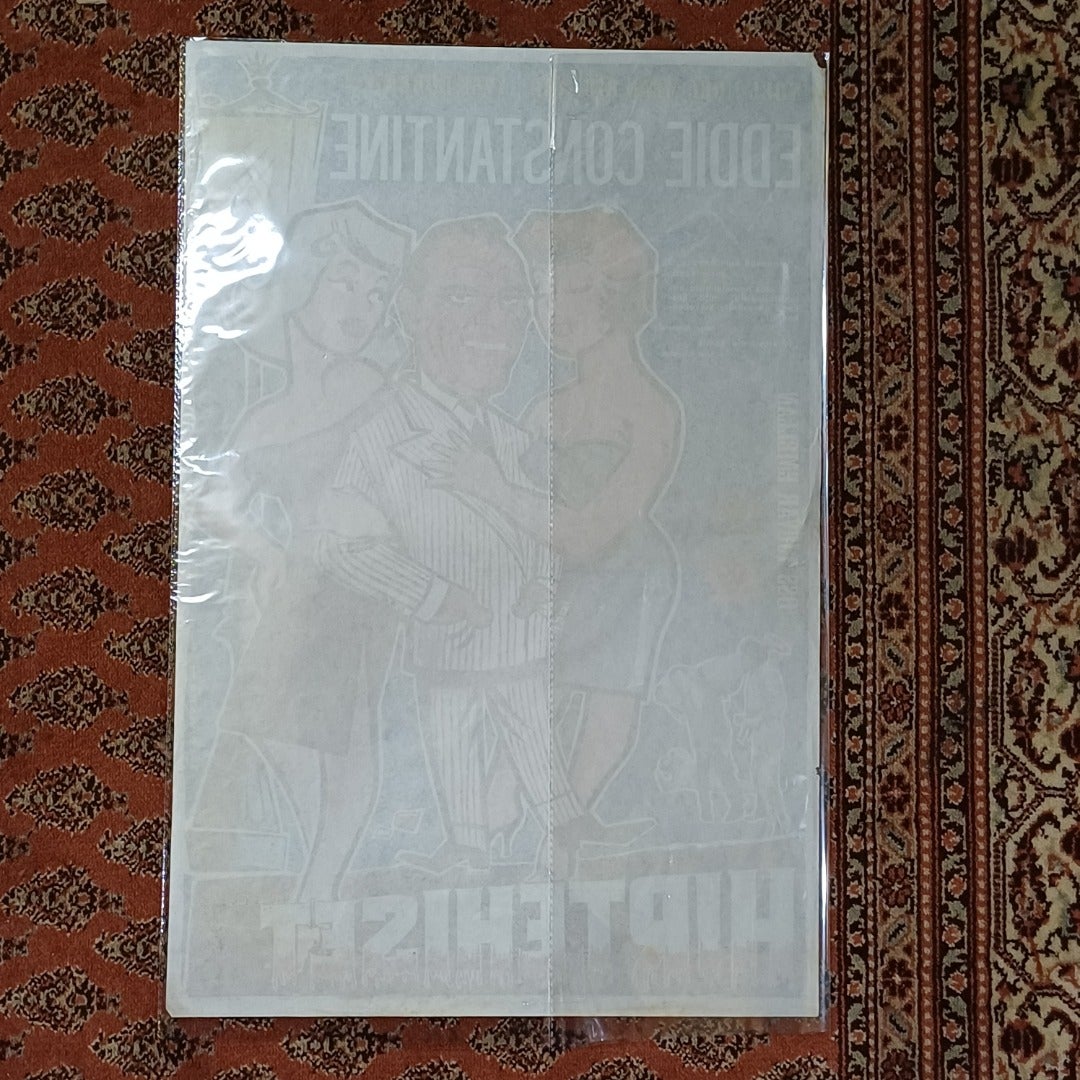 Kunto hyvä, yhdestä nurkasta puuttuu pieni pala. Julistetta on säilytetty vuosikymmenet suorana isossa kannellisessa pahvilaatikossa. Ollut alunperin elokuvateatterin mainosjuliste, koko n. 60 x 40cm. Julisteen suojana kirkas muovi, mahdolliset heijastumat johtuvat siitä. Toimitetaan pahviputkessa. Mahtava tuote vintage sisustajalle, joten ei muuta kuin kehyskauppaan!