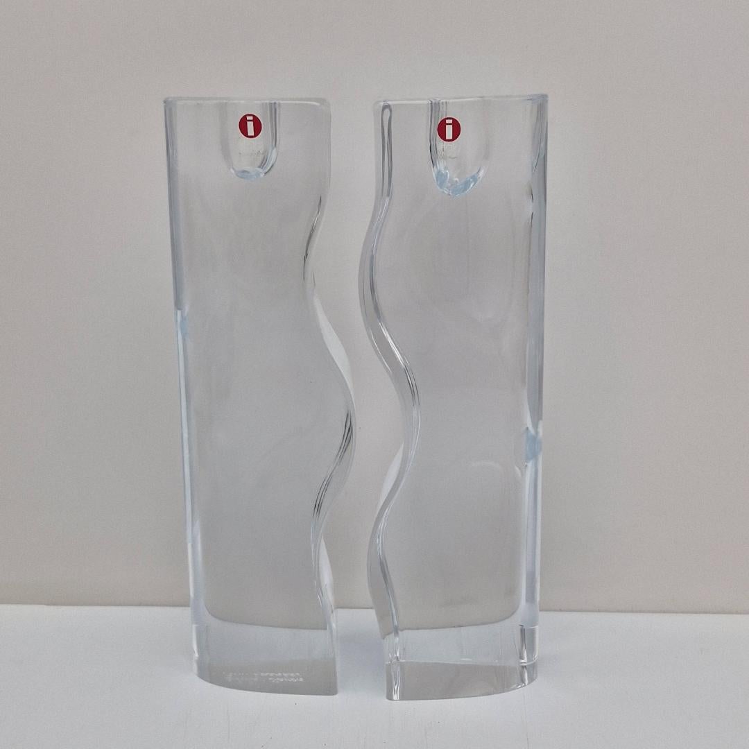Iittala, Pari Kynttilänjalat ( 2 osaa ), Tiina Nordström. Tiina Nordströmin Iittalalle suunnittelema hieno kynttilänjalkapari kirkasta lasia, 1980-luku. Korkeus 22 cm.