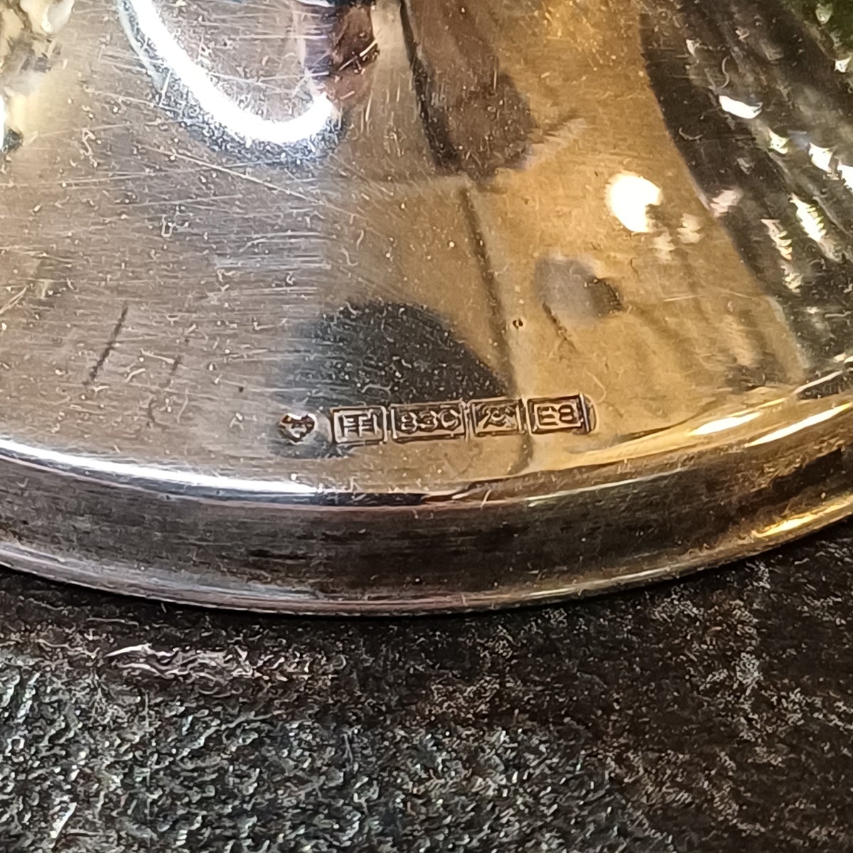 Tällä kertaa materiaalina harvemmin tarjolla oleva hopea, pitoisuus 830, vuosileima E8 = 1982. Pinnoissa tummumia ja pientä patinaa mutta ei lommoja tai ruttuja. Pohjarengas terästä, niissä kaiverrukset Loreal 19.04.1985.