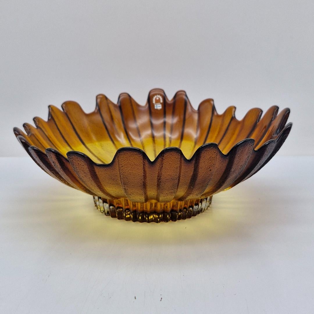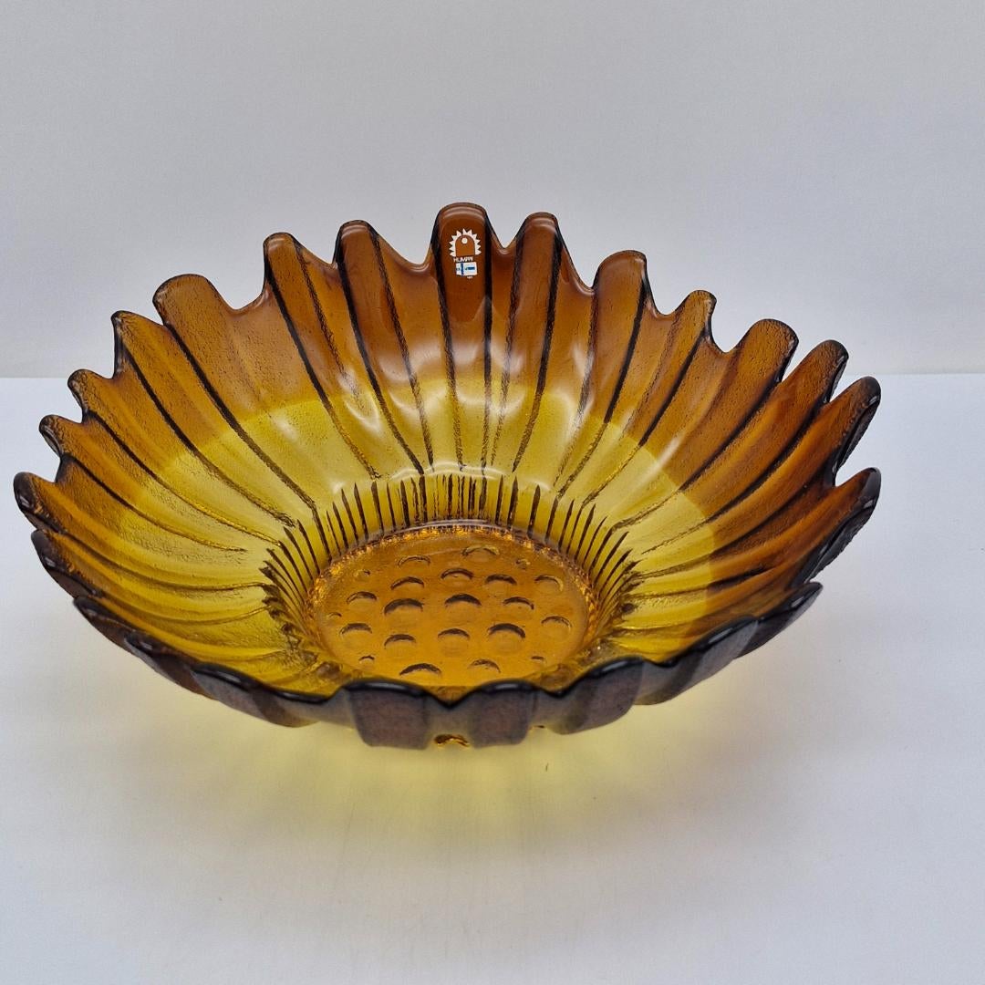 Tauno Wirkkala, Tokka Kulho, ruskea. Tauno Wirkkalan Humppilalle suunnittelema Tokka lasikulho / vati, ruskeaa ja kellertävää/amberin väristä lasia. Korkeus n. 11 cm ja halkaisija n. 28 cm.
