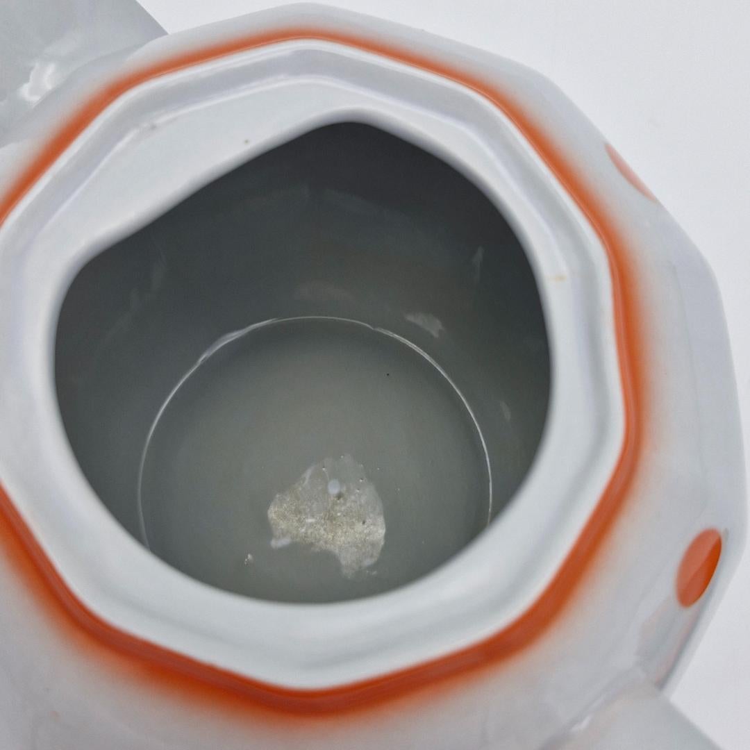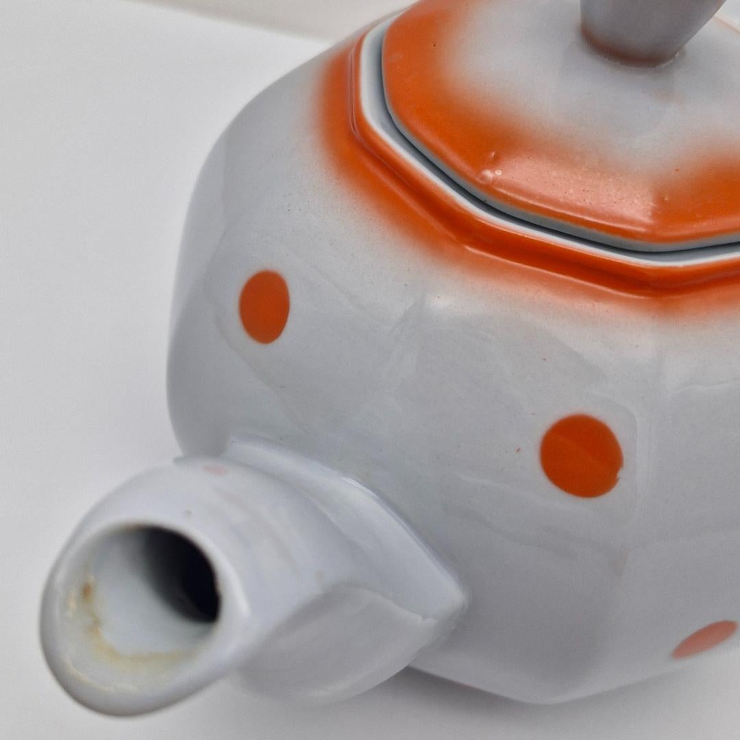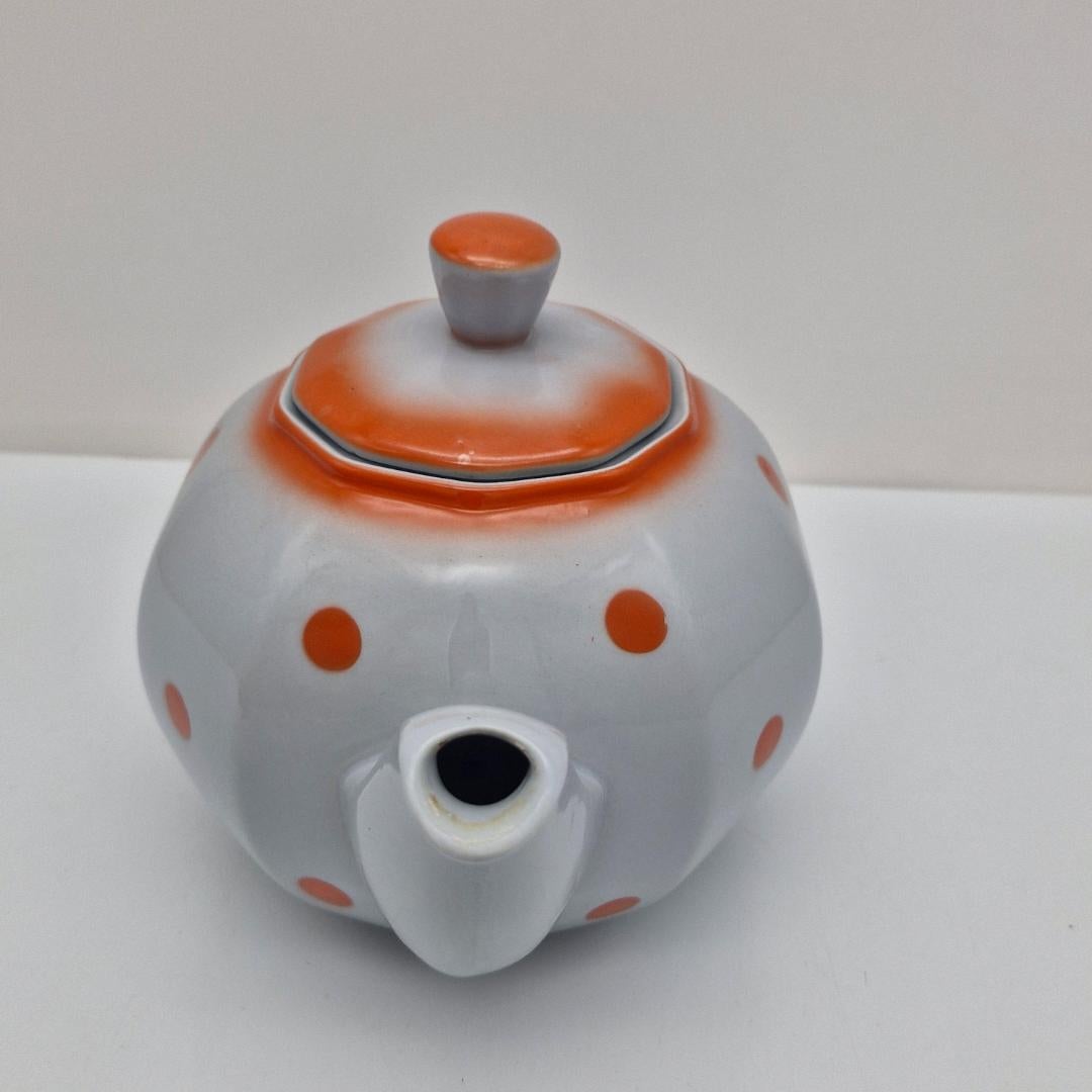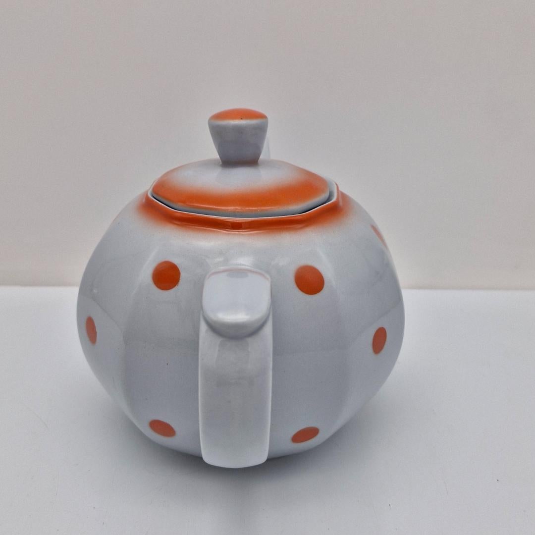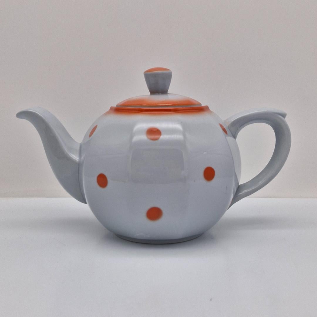 Arabia Teekannu, piippuleimalla, oranssit pallot. Arabian vanha teekannu oransseilla pallokuvioilla. Pohjassa piippuleima v. 1932-1949.