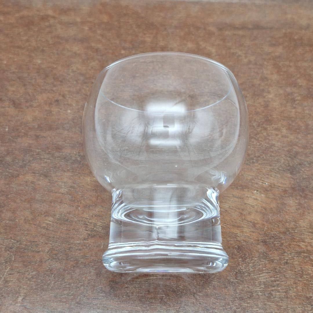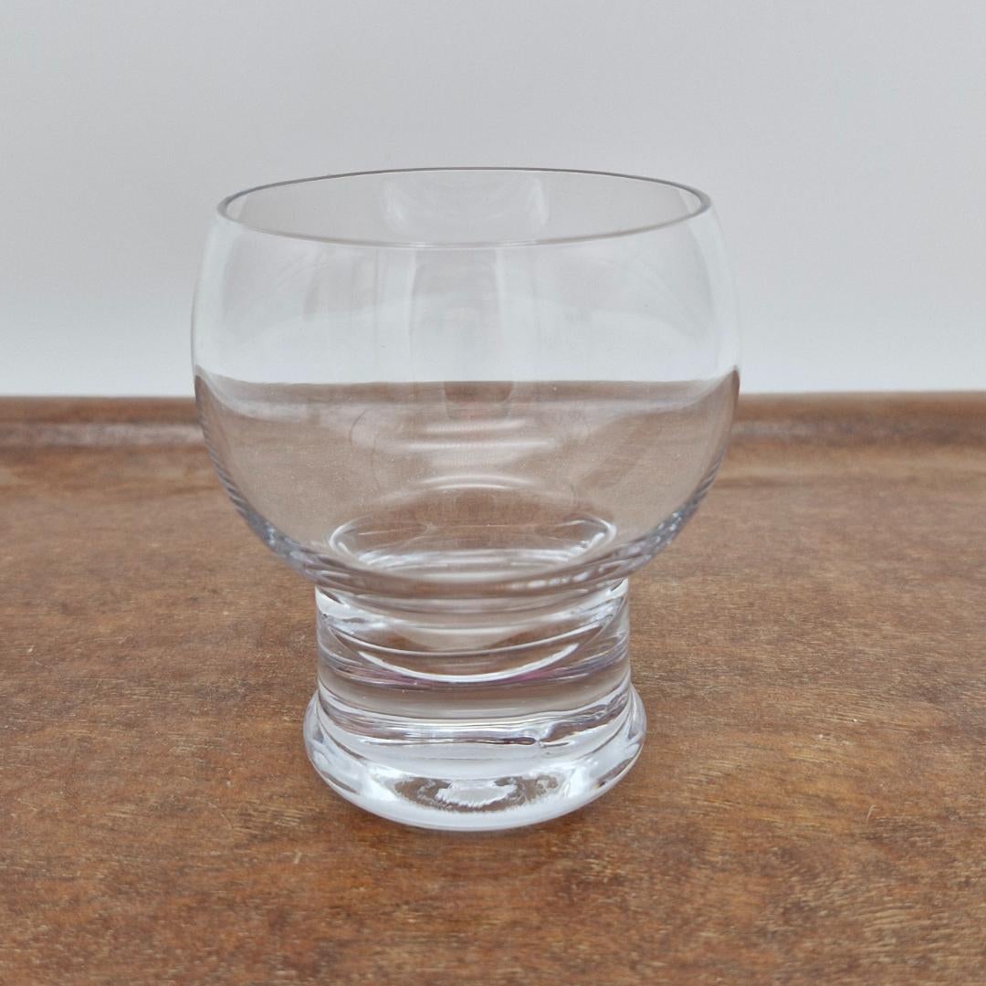 Riihimäen Lasi, Old King Cole Boolilasi, kirkas. Erkkitapio Siiroisen suunnitteleman Old King Cole-sarjan kirkas boolilasi. Korkeus 9 cm, suuaukon halkaisija n. 6,5 cm. Tuotannossa vuosina 1972-1976.