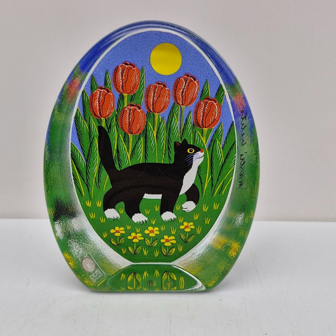 Iittala, Lasikortti Kissa ja Tulppaanit, Martti Lehto. Iittalan ihana kissa -aiheinen lasikortti, suunnittelija Martti Lehto, 1990-luku. Lasikortin koko 10 cm x 13 cm.