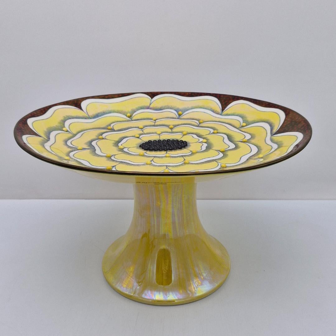 Arabia, Birger Kaipiainen, Florence, jalallinen malja. Birger Kaipiaisen suunnittelema upea ja näyttävä, suurikokoinen jalallinen "Florence"-koristemalja / taidevati. Korkeus 21,5 cm ja halkaisija 35 x 31 cm.